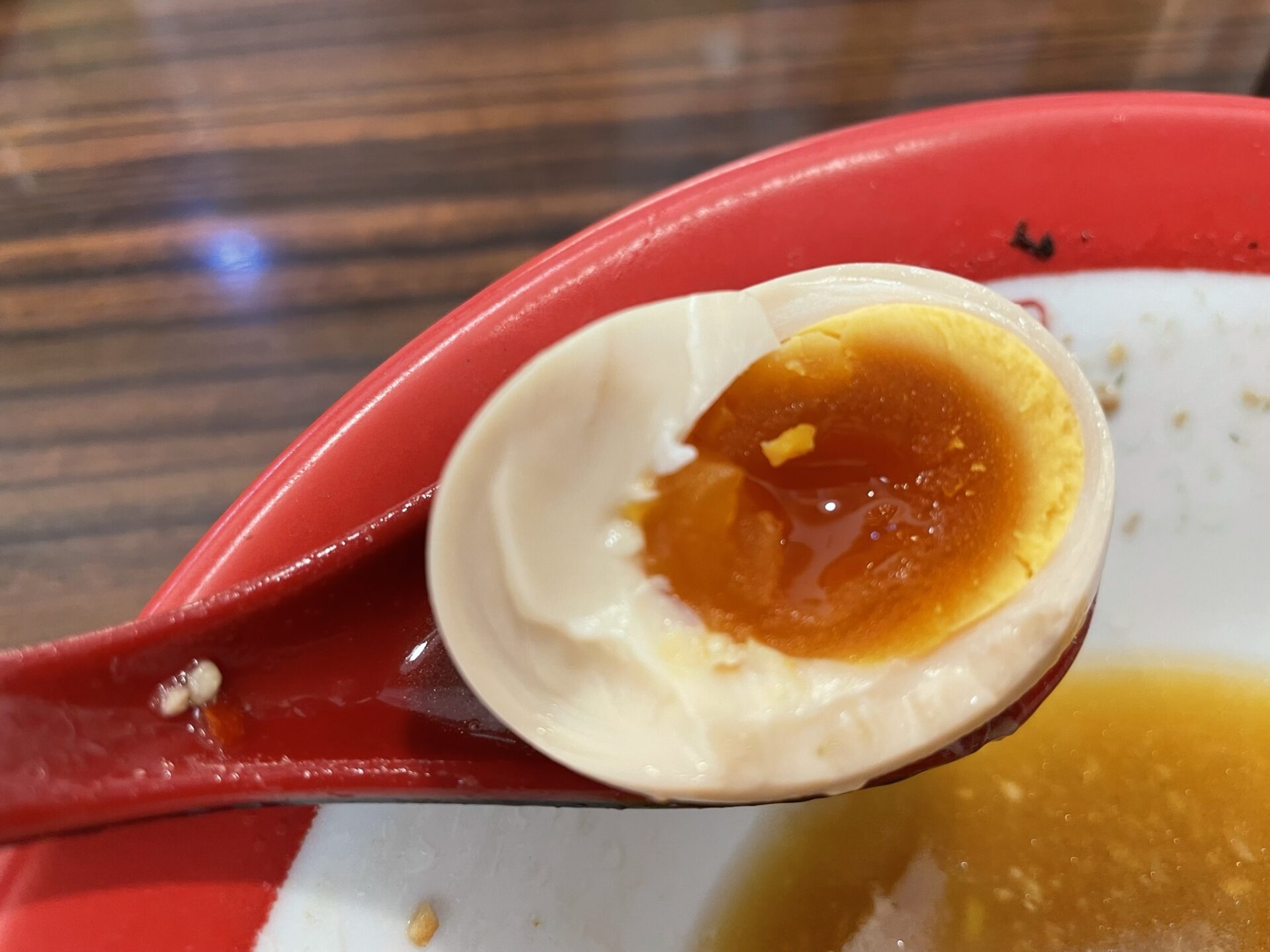 味玉も完璧。半熟よりやや固めの絶妙な火入れで、黄身はとろ~り、白身は出汁の味がしっかり染みてる。「ただの味玉」とは言わせないクオリティ!